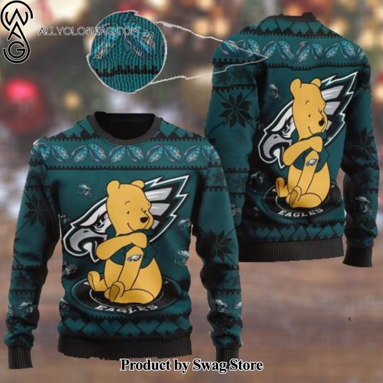 NOTE: [Top-selling] Philadelphia Eagles NFL American Football Team Logo Cute Winnie The Pooh Bear 3D Ugly Christmas Sweater Shirt For Men And Women On Xmas
