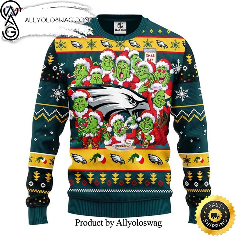NOTE: [Top-selling] Philadelphia Eagles Print 12 Grinch Xmas Day Show Your Team Spirit Ugly Christmas Sweater