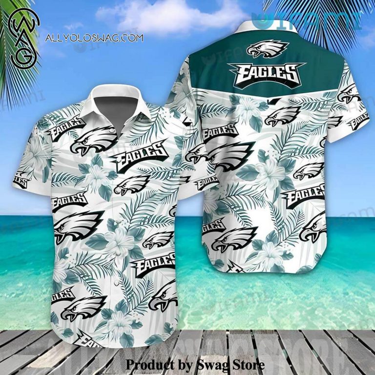 [Top-selling] Philadelphia Hibiscus Palm Leaf Flower Philadelphia Eagles Gift Hawaiian Shirt was hand-tailored in the early days of fashion. This might happen in the comfort of one’s own home or at a custom tailor’s business. These stores immediately sprang up all across the islands, especially in plantation towns and Honolulu. Newly accessible fabrics from throughout the world were sold at dry goods stores, including printed silk from Japan, raw silk, batik, and rayon from the United States mainland, and cotton cloth for kimonos and yukatas.Hawaiian history had long been shaped by Asian immigrants, and apparel designs reflected this. Short- and long-sleeved shirts, as well as women’s skirts, were created using pre-printed textiles from China and Japan and were based on Asian clothing styles. These bright blouses and dresses were the forerunners of today’s Aloha attire. On the islands, we say “ono” to describe something that is pleasantly cool.