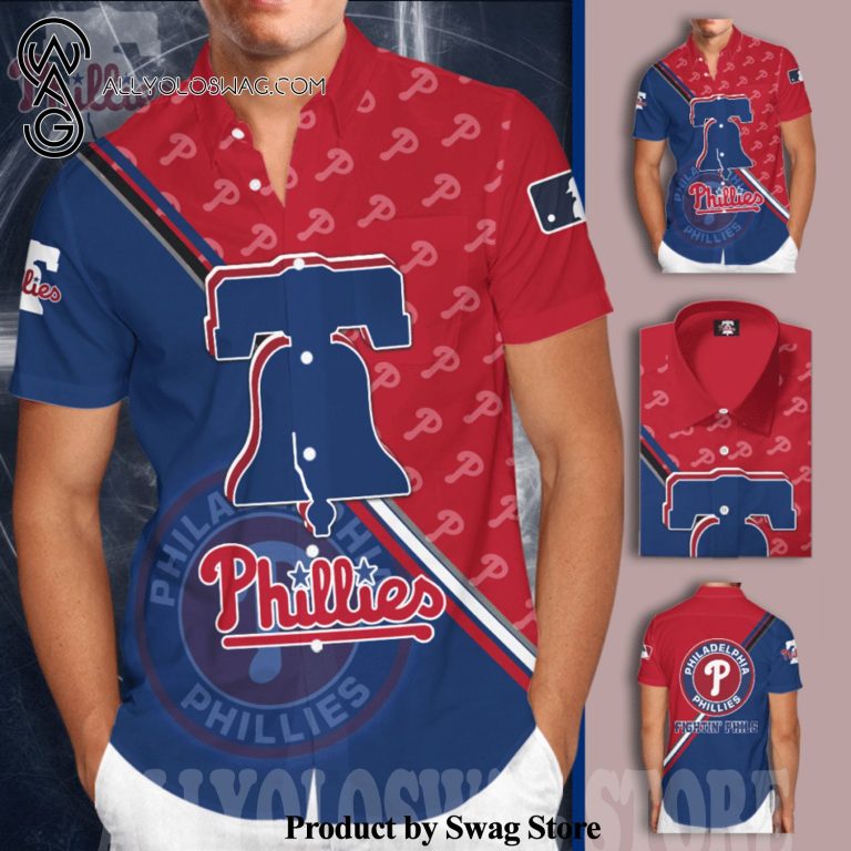 Hawaiian Shirt [Top-selling] Philadelphia Phillies All Over Print Short Sleeve Dress Shirt Hawaiian Summer Aloha Beach Shirt – Blue Red