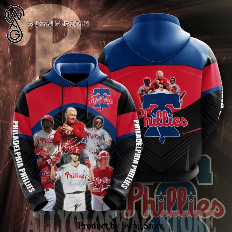 Product description information [Top-selling] Philadelphia Phillies Team Signatures Full Printing Casual Unisex Hoodie – Black Blue
