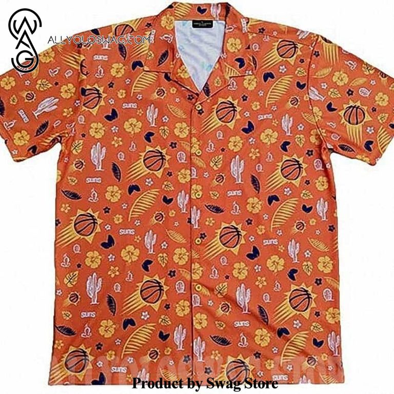 [Top-selling] Phoenix Suns Summer Set Hawaiian Shirt Gift For Basketball Lovers was hand-tailored in the early days of fashion. This might happen in the comfort of one’s own home or at a custom tailor’s business. These stores immediately sprang up all across the islands, especially in plantation towns and Honolulu. Newly accessible fabrics from throughout the world were sold at dry goods stores, including printed silk from Japan, raw silk, batik, and rayon from the United States mainland, and cotton cloth for kimonos and yukatas.Hawaiian history had long been shaped by Asian immigrants, and apparel designs reflected this. Short- and long-sleeved shirts, as well as women’s skirts, were created using pre-printed textiles from China and Japan and were based on Asian clothing styles. These bright blouses and dresses were the forerunners of today’s Aloha attire. On the islands, we say “ono” to describe something that is pleasantly cool.