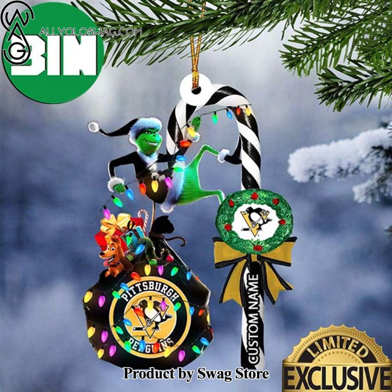 NOTE: [Top-selling] Pittsburgh Penguins NHL Grinch Candy Cane Custom Name Christmas Tree Ornament