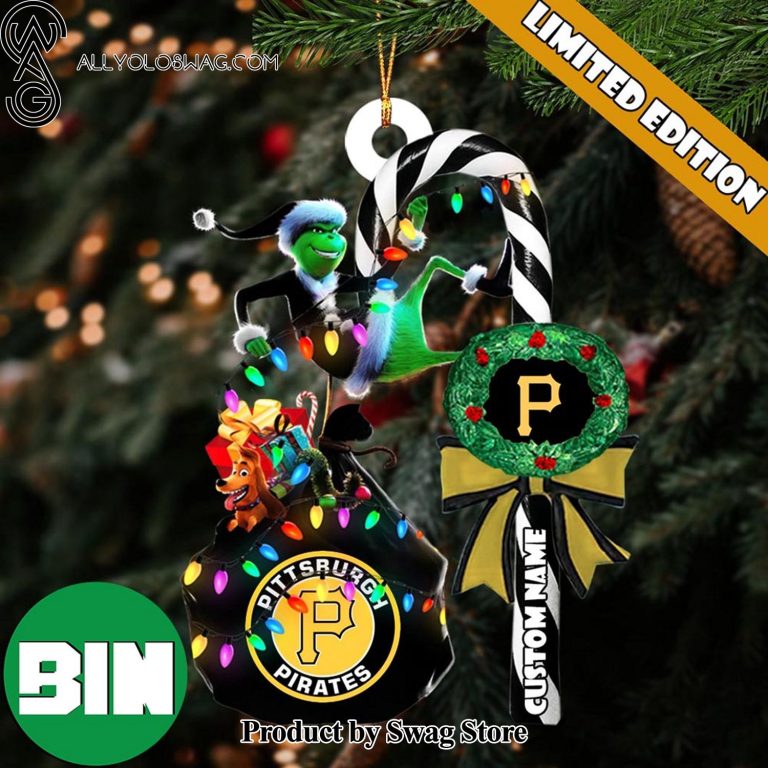 [Top-selling] Pittsburgh Pirates MLB Custom Name Grinch Candy Cane Christmas Tree Ornament