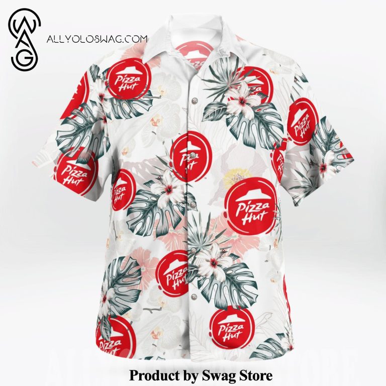 Some details about our product [Top-selling] Pizza Hut Logo All Over Print Flowery Aloha Summer Beach Hawaiian Shirt – White
