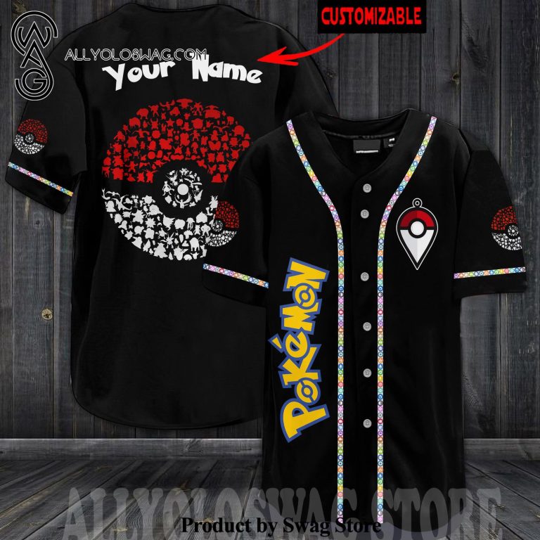 9 Effortlessly Cool Baseball Jersey Outfit Ideas [Top-selling] Poke Ball Pokemon All Over Printed Unisex Baseball Jersey – Black