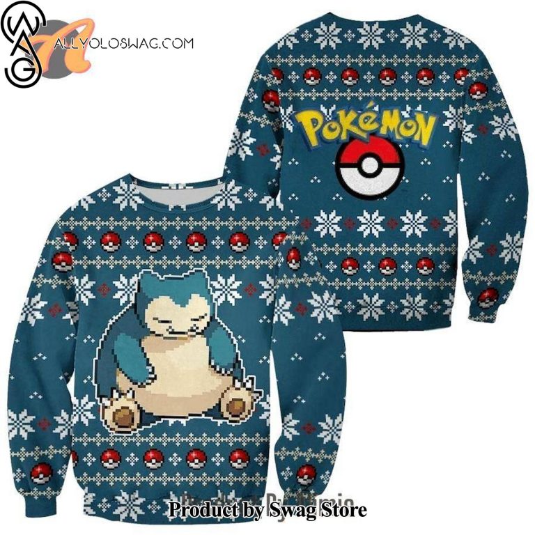 NOTE: [Top-selling] Pokemon Anime Snorlax Nitendo Game Art Ugly Wool Sweater