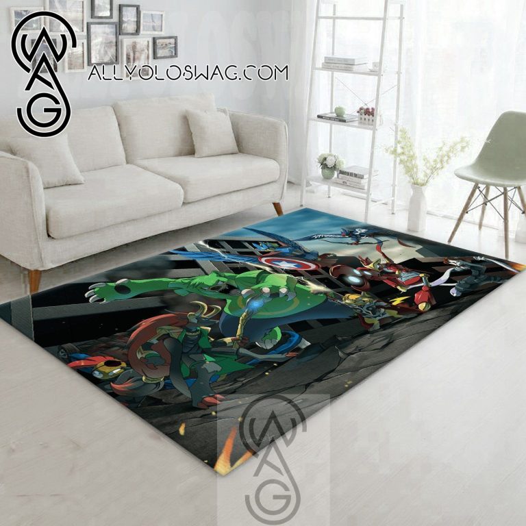 NOTE: [Top-selling] Pokemon Avengers Anime Area Rug Bedroom Rug Home US Decor