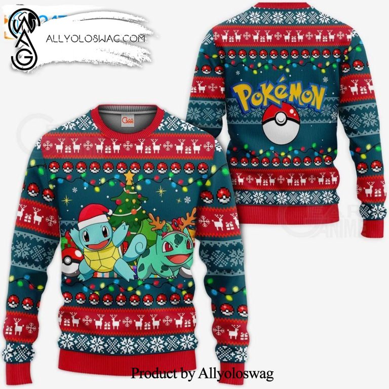 NOTE: [Top-selling] Pokemon Bulbasaur And Squirtle Pattern Ugly Christmas Sweater