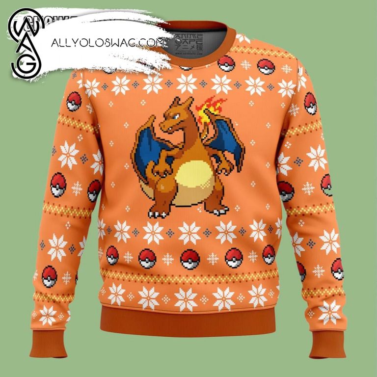 Some details about our [Top-selling] Pokemon Christmas Blaze Charizard Anime Ape Pokemon Knitting Pattern Ugly Christmas Sweater