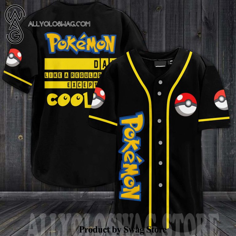 9 Effortlessly Cool Baseball Jersey Outfit Ideas [Top-selling] Pokemon Dad Like A Regular Dad Except Way Cooler All Over Printed Unisex Baseball Jersey – Black
