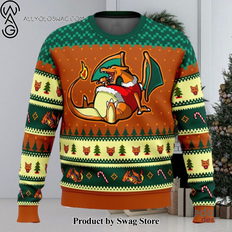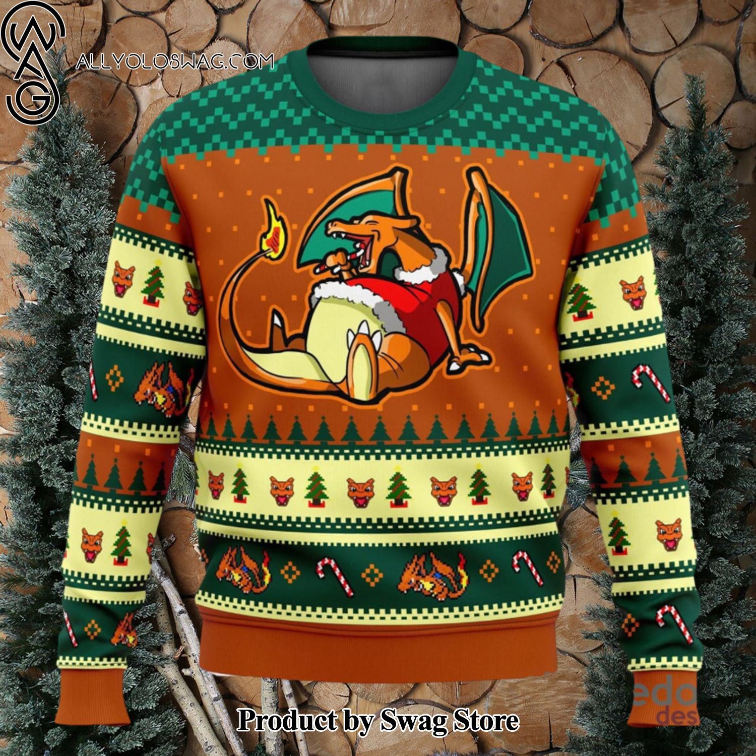 NOTE: [Top-selling] Pokemon Eating Candy Cane Charizard Christmas Ugly Wool Knitted Sweater