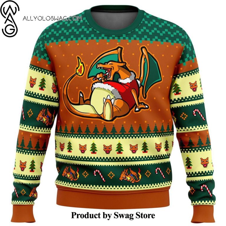 NOTE: [Top-selling] Pokemon Eating Candy Cane Charizard Ugly Christmas Sweater