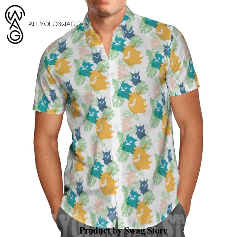 Some details about our product [Top-selling] Pokemon Gengar Tropical Leaf All Over Print Hawaiian Shirt – White