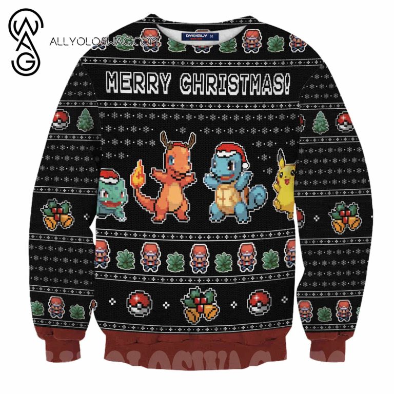 8. After winter, store sweaters – [Top-selling] Pokemon Merry Christmas Wool Knitted Sweater Charmeleon Charmander Squirtle Pikachu All Over Print Sweater