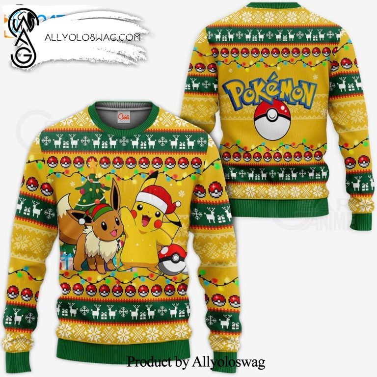 NOTE: [Top-selling] Pokemon Pikachu Eevee Pattern Ugly Christmas Sweater