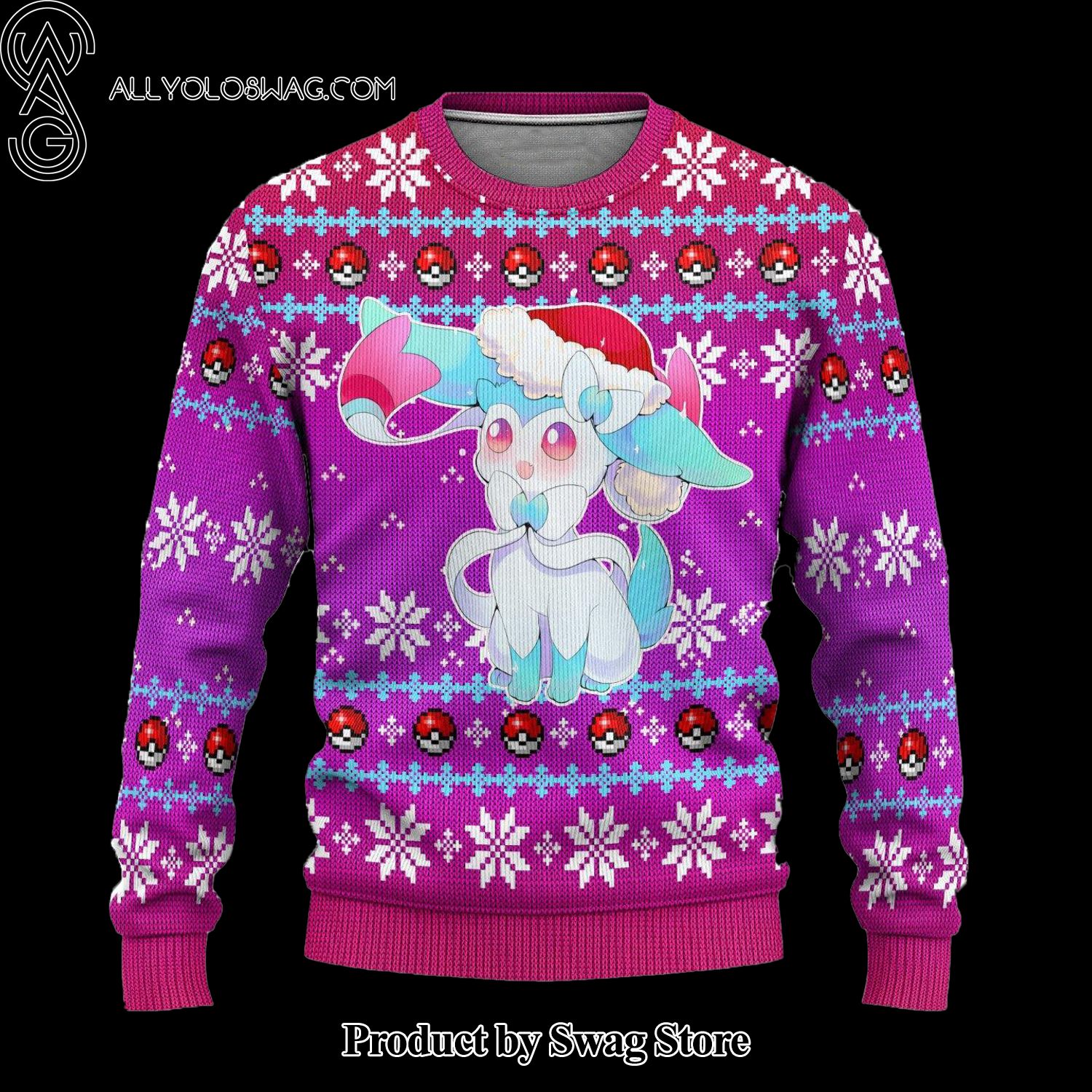NOTE: [Top-selling] Pokemon Sylveon Anime Christmas Ugly Wool Knitted Sweater
