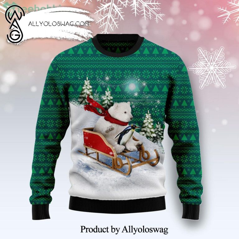 [Top-selling] Polar Bear Sleigh Funny Bear Knitted Ugly Christmas Sweater