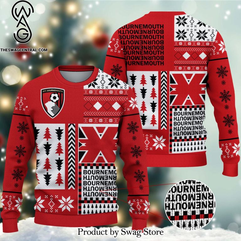 NOTE: [Top-selling] Premier League AFC Bournemouth Christmas Logo For Christmas Gifts Ugly Christmas Wool Knitted Sweater