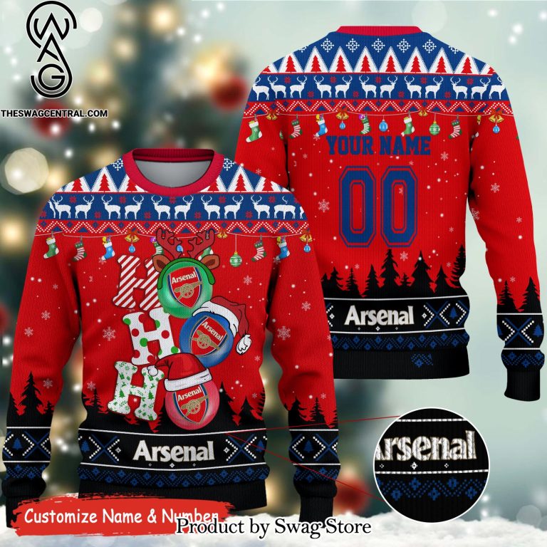 Some details about our [Top-selling] Premier League Arsenal Name And Number Christmas HoHoHo Ugly Wool Sweater
