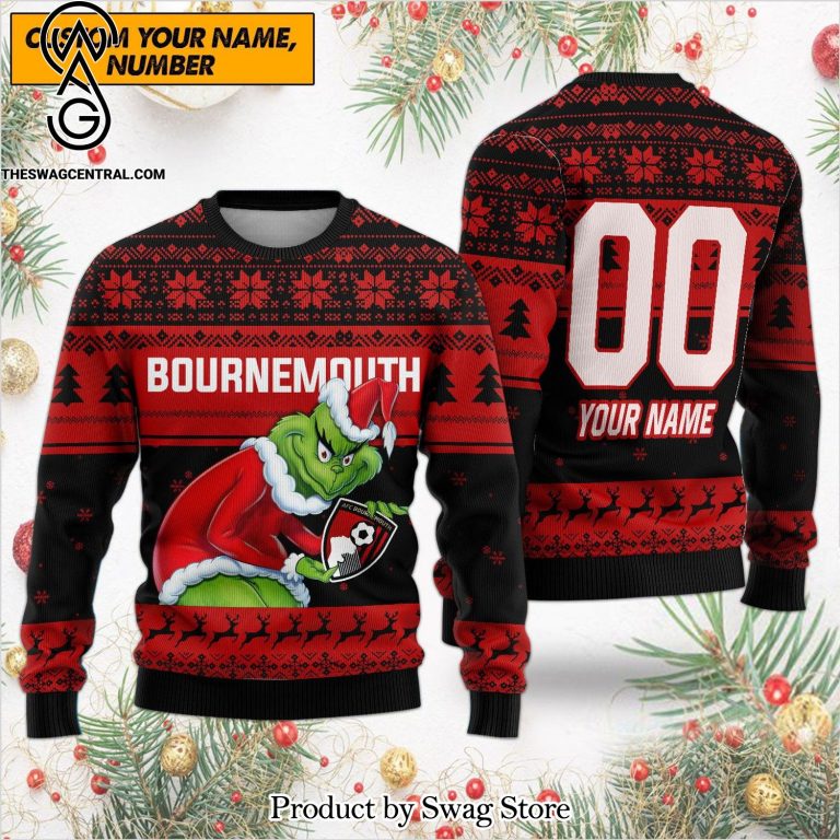 NOTE: [Top-selling] Premier League Bournemouth The Grinch Name Number Woolen Christmas Sweater