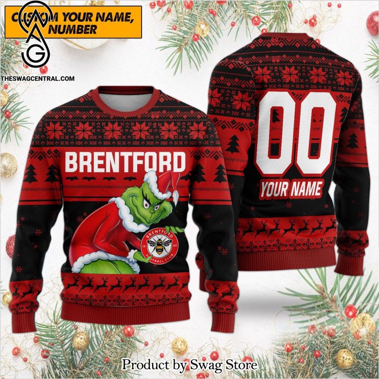 [Top-selling] Premier League Brentford The Grinch Name Number Wool Holiday Sweater