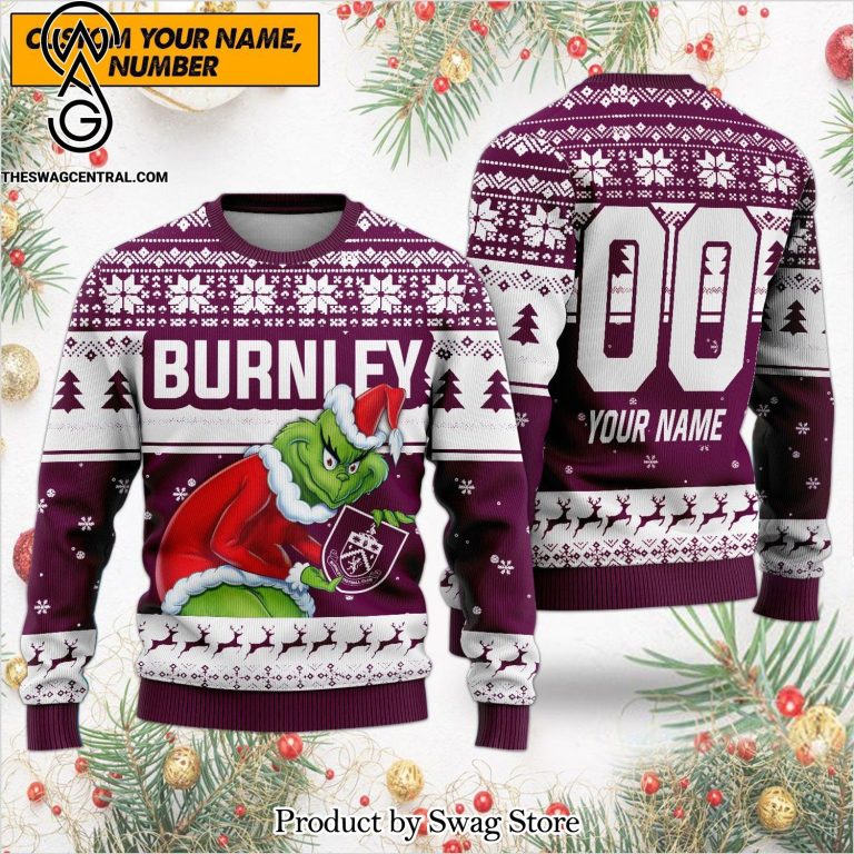 NOTE: [Top-selling] Premier League Burnley The Grinch Name Number Woolen Christmas Sweater