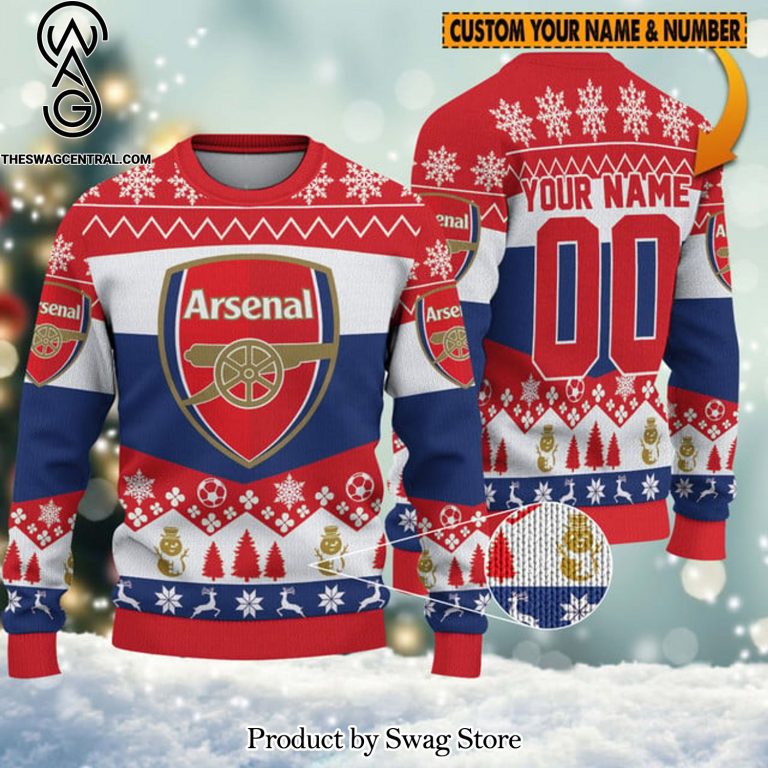 NOTE: [Top-selling] Premier League Christmas Arsenal Name Number Knitting Pattern Ugly Christmas Sweater