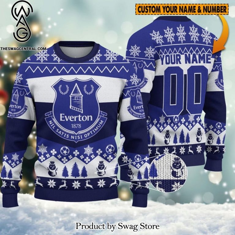 NOTE: [Top-selling] Premier League Christmas Everton Name Number Knitting Pattern Ugly Christmas Sweater