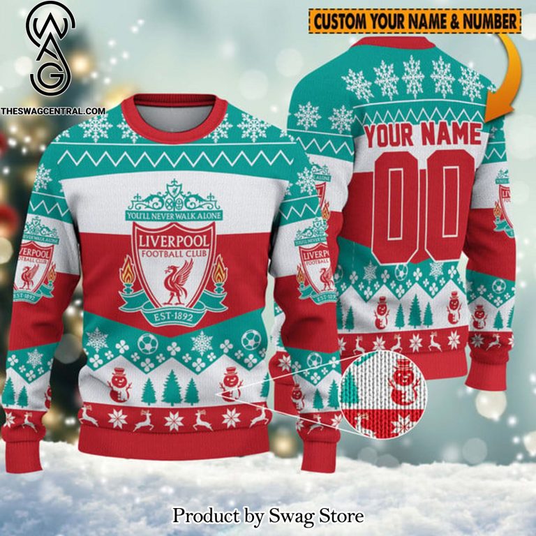 NOTE: [Top-selling] Premier League Christmas Liverpool Name Number For Christmas Gifts Ugly Christmas Wool Knitted Sweater
