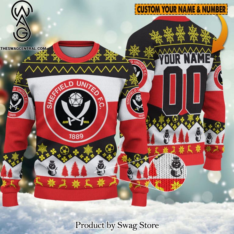Some details about our [Top-selling] Premier League Christmas Sheffield United Name Number Ugly Christmas Wool Knitted Sweater