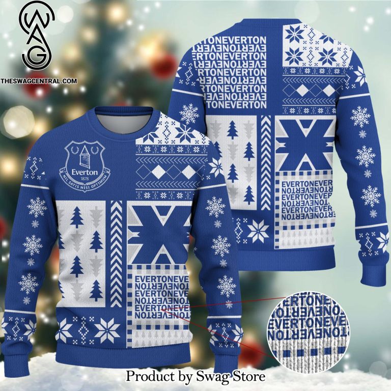 NOTE: [Top-selling] Premier League Everton Christmas Logo Ugly Christmas Wool Knitted Sweater