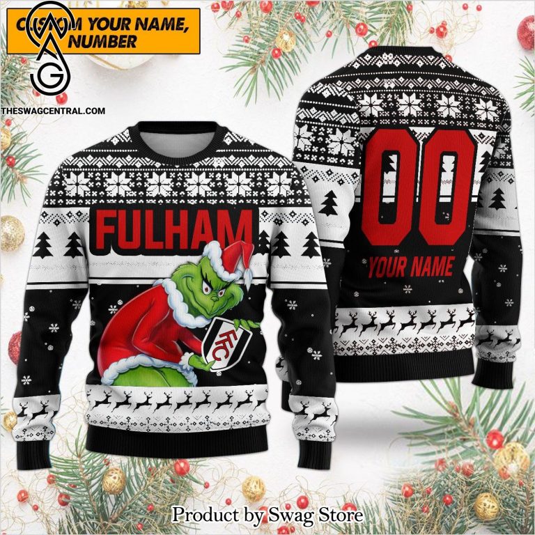 [Top-selling] Premier League Fulham The Grinch Name Number For Christmas Gifts 3D Printed Ugly Christmas Sweater