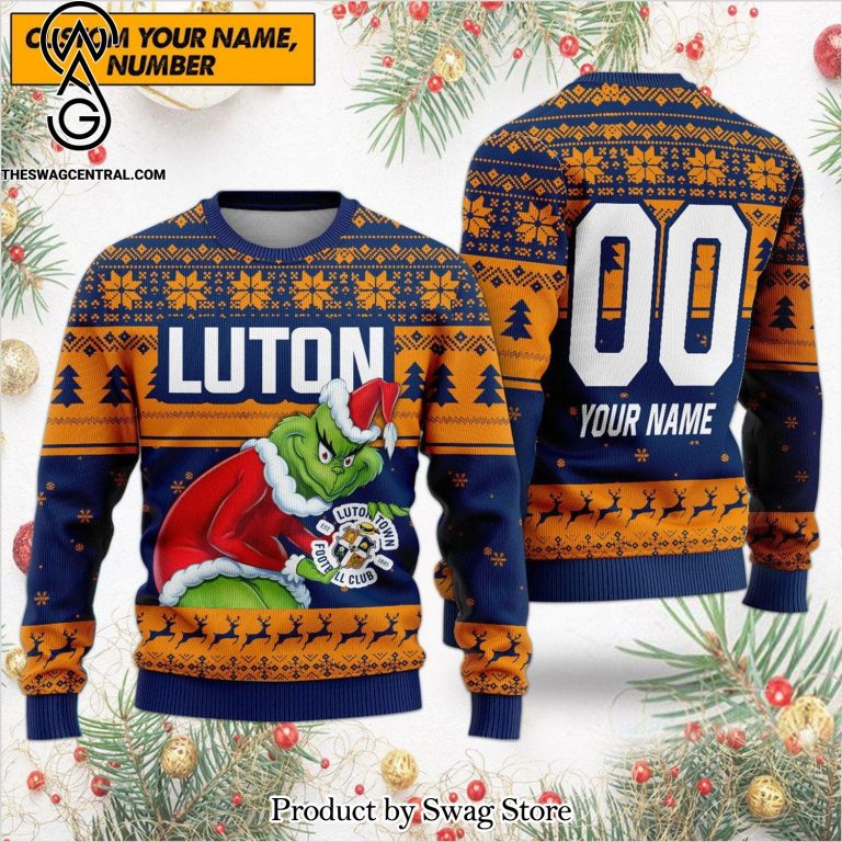 NOTE: [Top-selling] Premier League Luton Town The Grinch Name Number Woolen Christmas Sweater