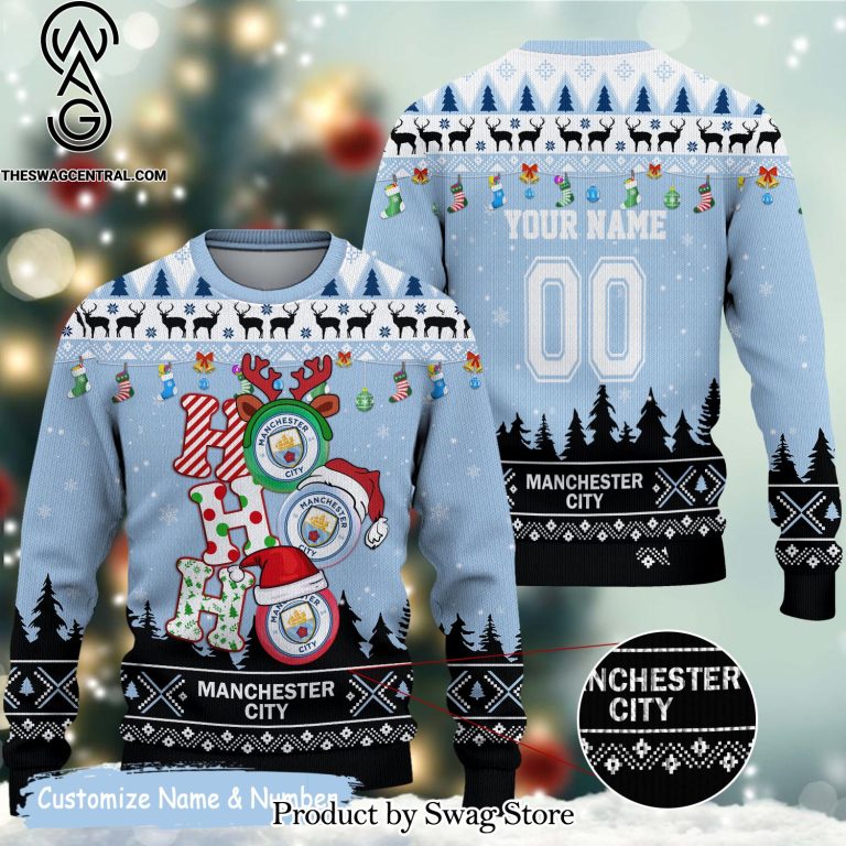 NOTE: [Top-selling] Premier League Manchester City Name And Number Christmas HoHoHo Christmas Ugly Wool Knitted Sweater