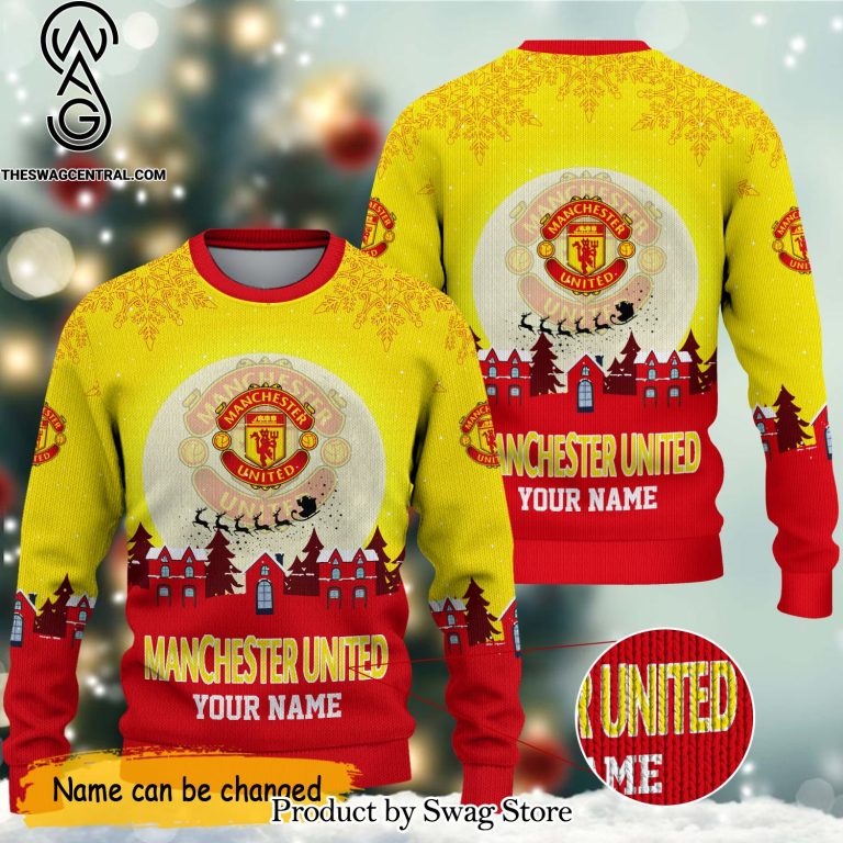 NOTE: [Top-selling] Premier League Manchester United Christmas Name For Christmas Gifts Ugly Xmas Wool Knitted Sweater
