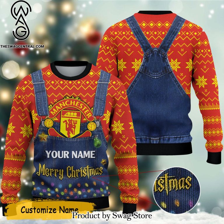 NOTE: [Top-selling] Premier League Manchester United Name For Christmas Gifts Christmas Ugly Wool Knitted Sweater