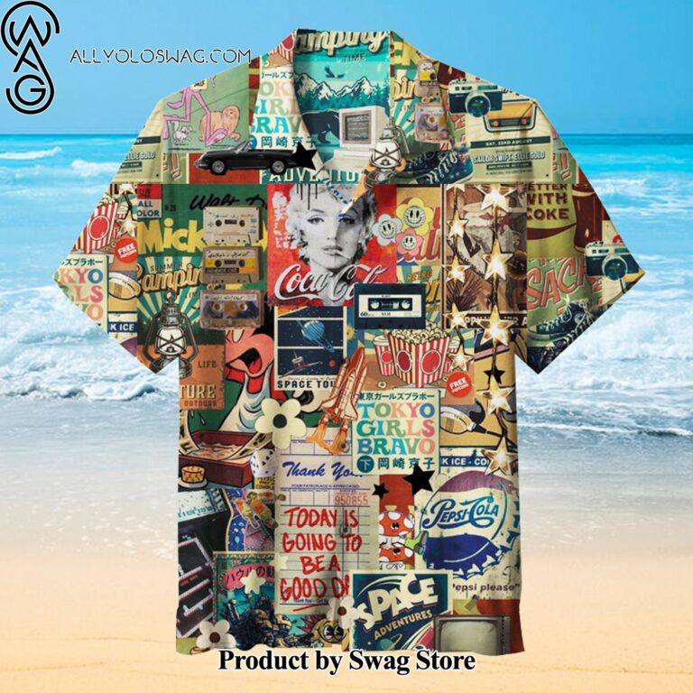 [Top-selling] Retro collage Vibrant Print Hawaiian Shirt description information