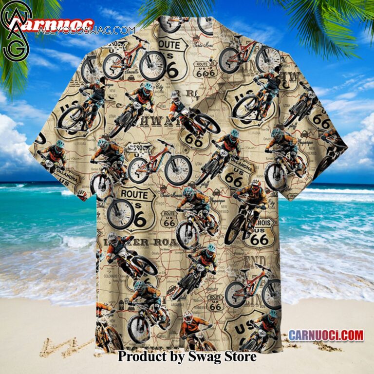 NOTE: [Top-selling] ROUTE 66 MOUNTAIN BIKE RACING Honeymoon Hawaiian Shirt
