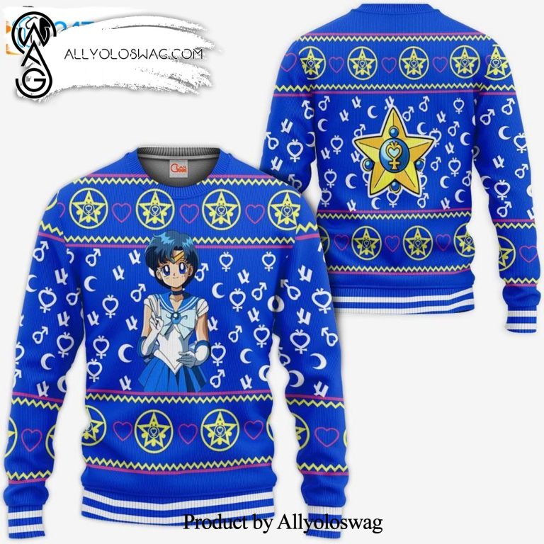 8. After winter, store sweaters – [Top-selling] Sailor Moon Sailor Mercury Pattern Ugly Christmas Sweater