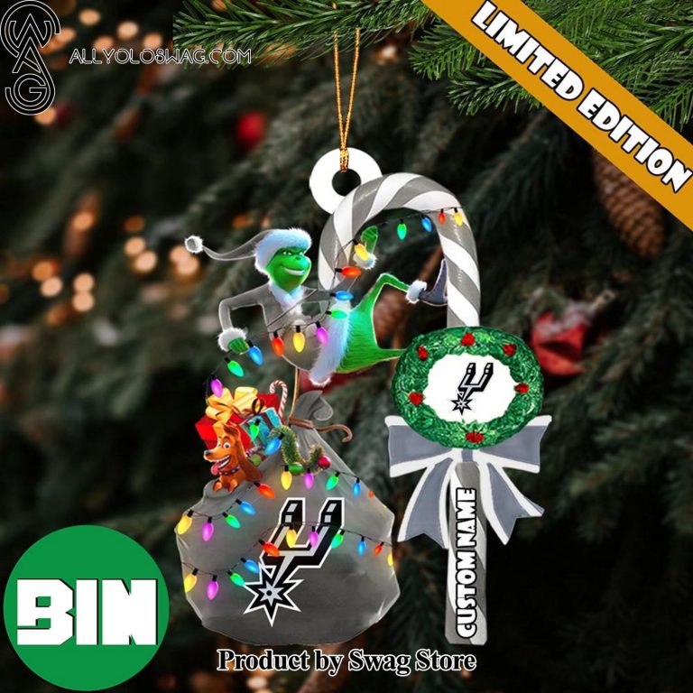 NOTE: [Top-selling] San Antonio Spurs NBA Custom Name Grinch Candy Cane Christmas Tree Ornament