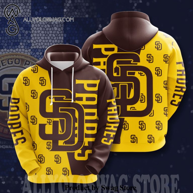 NOTE: [Top-selling] San Diego Padres Logo Full Printing Casual Unisex Hoodie – Brown Yellow