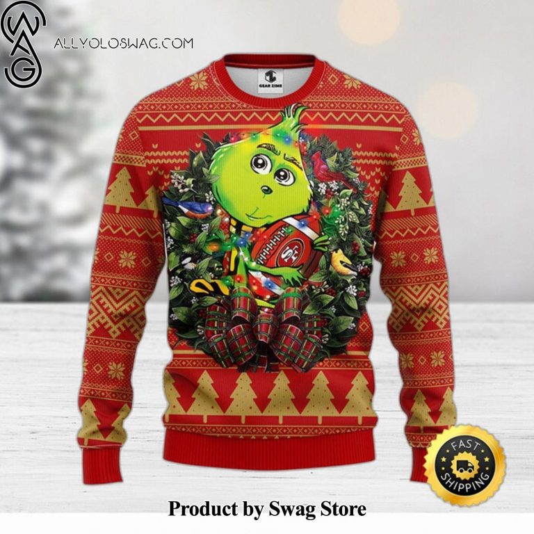 Some details about our [Top-selling] San Francisco 49ers Christmas Ugly Sweater Grinch Hug Xmas Day Show Your Team Spirit