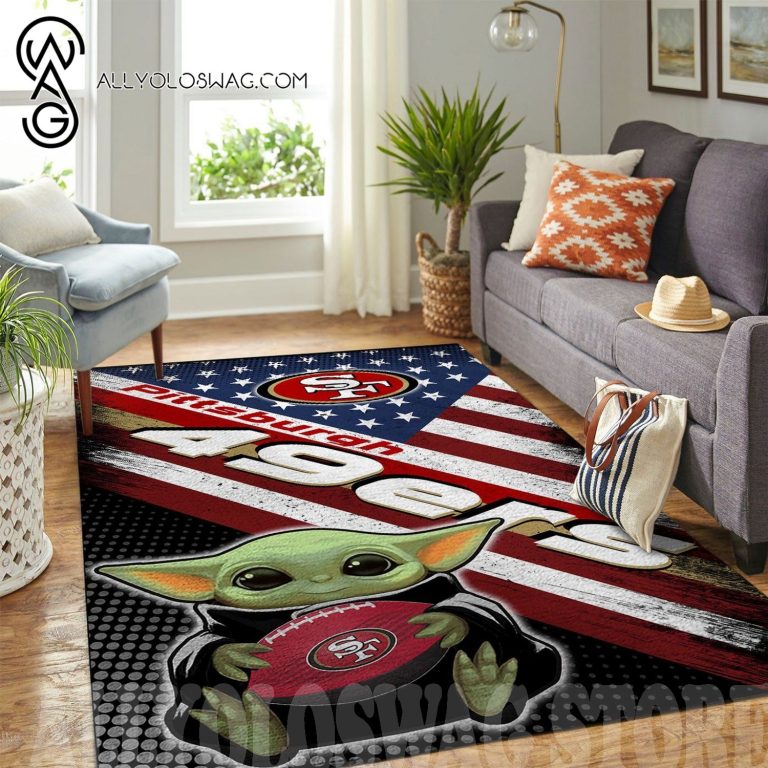 Product description information – [Top-selling] San Francisco 49ers NFL Team Logo Baby Yoda Us Style Nice Gift Home Decor Rectangle Area Rug 1404