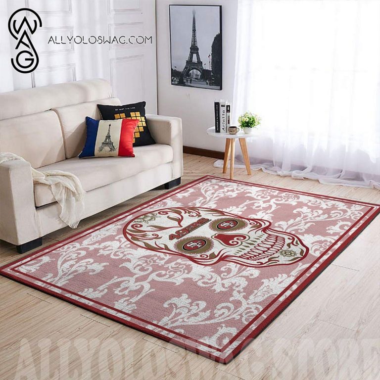 Product description information – [Top-selling] San Francisco 49ers NFL Team Logo Skull Flower Style Nice Gift Home Decor Rectangle Area Rug 1721