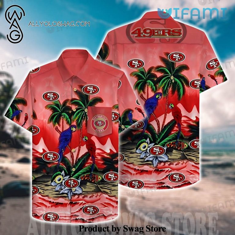 [Top-selling] San Francisco 49ers Parrots 49ers Gift Hawaiian Shirt was hand-tailored in the early days of fashion. This might happen in the comfort of one’s own home or at a custom tailor’s business. These stores immediately sprang up all across the islands, especially in plantation towns and Honolulu. Newly accessible fabrics from throughout the world were sold at dry goods stores, including printed silk from Japan, raw silk, batik, and rayon from the United States mainland, and cotton cloth for kimonos and yukatas.Hawaiian history had long been shaped by Asian immigrants, and apparel designs reflected this. Short- and long-sleeved shirts, as well as women’s skirts, were created using pre-printed textiles from China and Japan and were based on Asian clothing styles. These bright blouses and dresses were the forerunners of today’s Aloha attire. On the islands, we say “ono” to describe something that is pleasantly cool.