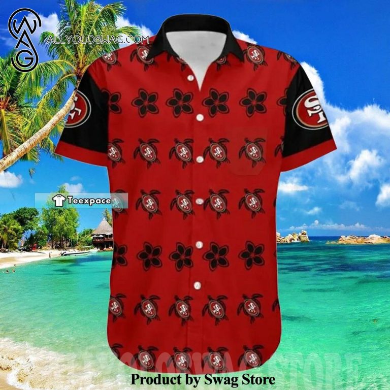 [Top-selling] San Francisco 49ers Turtle Summer Set Hawaiian Shirt San Francisco 49ers Gift Ideas was hand-tailored in the early days of fashion. This might happen in the comfort of one’s own home or at a custom tailor’s business. These stores immediately sprang up all across the islands, especially in plantation towns and Honolulu. Newly accessible fabrics from throughout the world were sold at dry goods stores, including printed silk from Japan, raw silk, batik, and rayon from the United States mainland, and cotton cloth for kimonos and yukatas.Hawaiian history had long been shaped by Asian immigrants, and apparel designs reflected this. Short- and long-sleeved shirts, as well as women’s skirts, were created using pre-printed textiles from China and Japan and were based on Asian clothing styles. These bright blouses and dresses were the forerunners of today’s Aloha attire. On the islands, we say “ono” to describe something that is pleasantly cool.