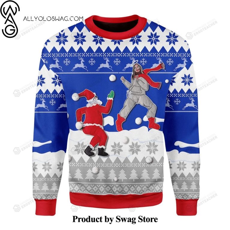 NOTE: [Top-selling] Santa And Jesus Playing Snowball Knitting Pattern Ugly Christmas Holiday Sweater