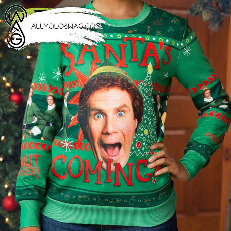 8. After winter, store sweaters – [Top-selling] Santa’s Coming Adult Elf Ugly Christmas Sweater