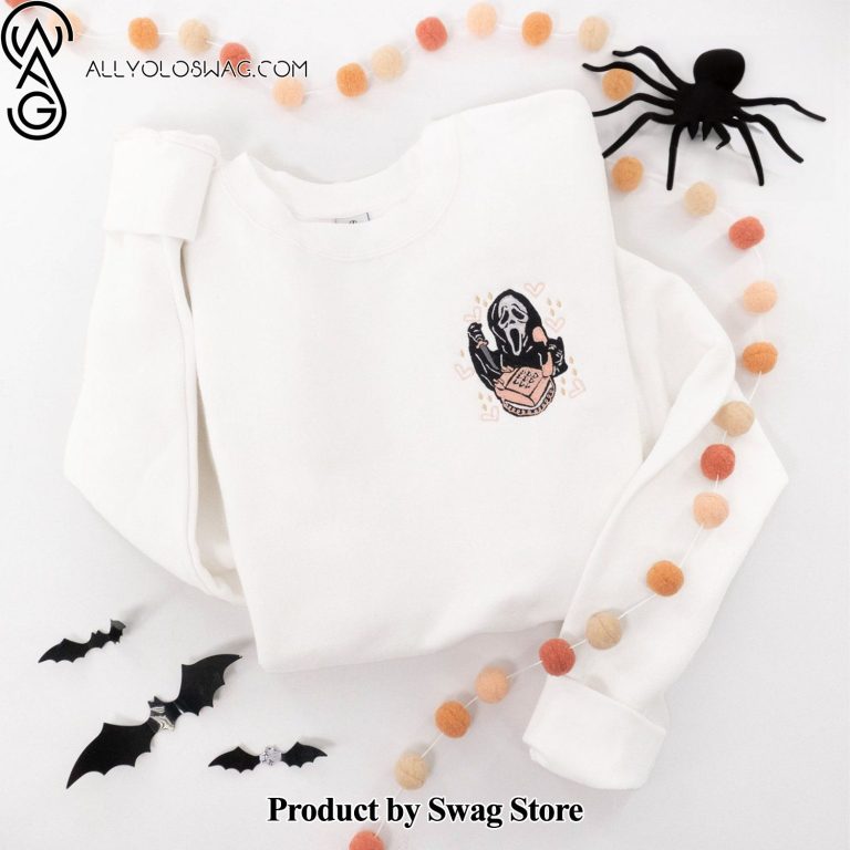 [Top-selling] Scream Ghost Face Embroidered Sweatshirt, Scream Sweatshirt, Funny Ghost Face Sweatshirt, Horror Movie Sweatshirt